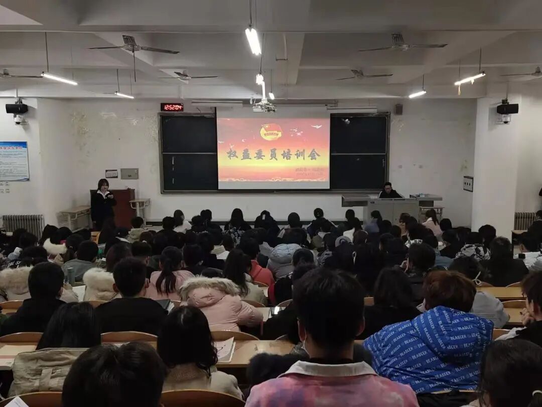 大学生逐渐步入社会,在接触社会生活的复杂和多变时,同时也面临着诸多的潜在威胁。为解决20级权益委员在工作上经验不足和考虑不周等问题,使权益委员具有更强的责任心,给同学们创造公平公正的生活环境,校团委权益部于11月25日中午12:50在二教109教室召开了权益委员培训会。本次培训会由校团委权益部大二委员陈帅主持。