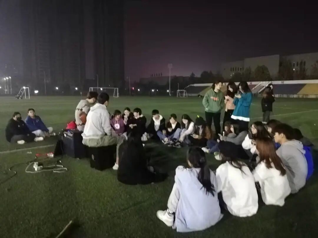 当日下午,在社联的精心组织下,大家有序地在操场集合。所有人员接受点名和安排,在主持人的带领下大家开始自我介绍,介绍完毕后开始了第一轮游戏,大一委员活力四射,游戏打破了大家之间的隔阂。第一环节游戏过后大家很快进入状态,第二轮游戏让他们感觉到团结的重要性,第三轮游戏他们彻底放开自我,而最后的惩罚环节把整个拉练的氛围推向了高潮,大家坐在一起唱着歌。